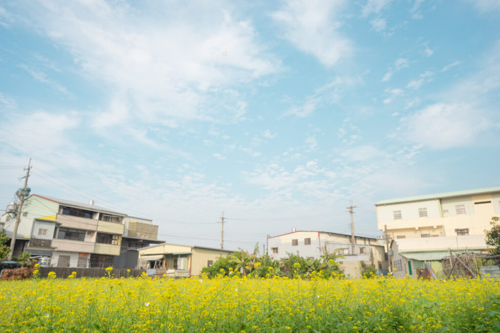 這個園區旁也種了一大片油菜花田,像整日本小鎮,同樣值得一去!
