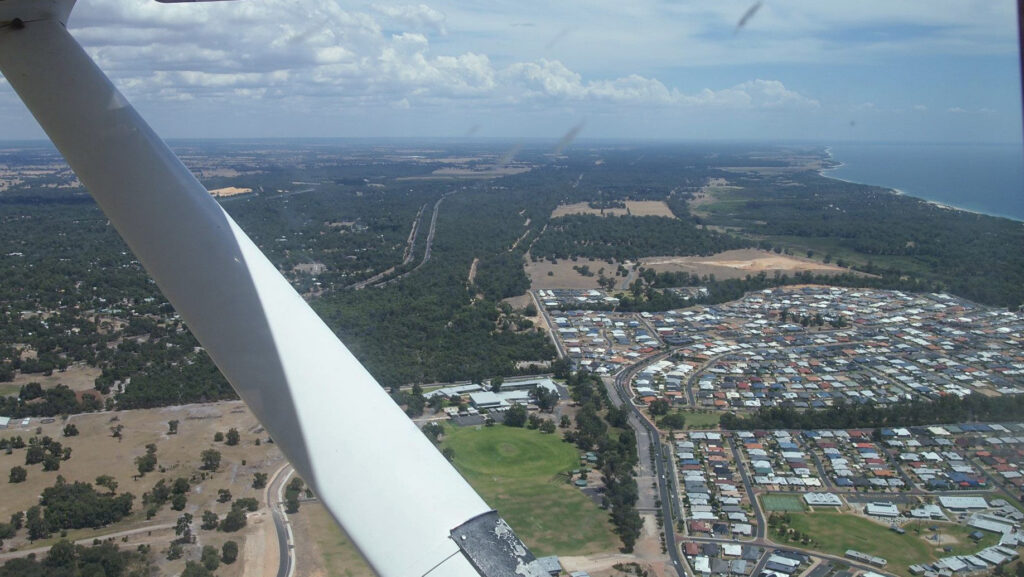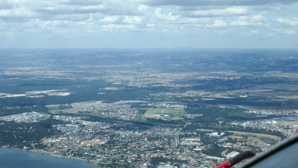 上升到一定高度後便開始學習上升、俯衝、側飛等等的技巧,然後便放手我在附近徘徊,再閒談一些飛行的趣事、觀賞一下Bunbury海岸線的美景便要準備降落了。