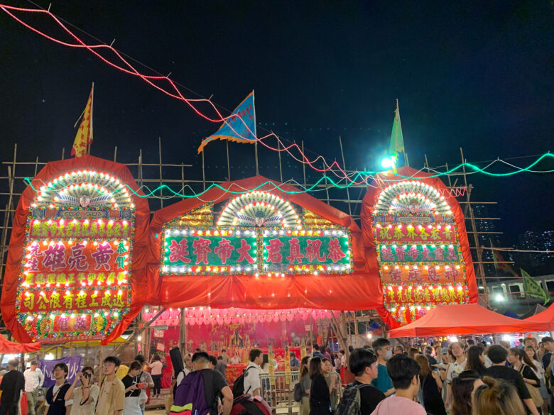 多年沒見的青衣戲棚今年終於復出,真君誕於5月1日至5月5日開始,但當你看到這篇文章的時候,應該已經完結了,不過今年真君誕完結後戲棚並不會拆卸,而是留到5月19日至5月23日青衣天后誕舉行,所以這次沒趕上的話可以吼準天后誕。 這次選準最後一天晚上過去,目標是像年宵一樣撿便宜貨,然而的確大部分商店都於晚上十時左右開始減價,像臭豆腐和蠔嗲甚至降到半價,實在便宜得多,除了撿便宜外,好吃的推介也有蠔仔麵線、串燒、花枝丸和燒魷魚等。 說到戲棚當然要看一看戲,真君誕由蓋鳴輝及吳美英主演的「鳴芝聲劇團」粵劇表演戲班演出,天后誕由龍貫天、鄧美玲、阮兆輝等主演的「鴻嘉寶粵戲團」表演,就算不懂粵劇,這兩個劇團都是在香港大名頂頂的劇團,有興趣亦可以購票觀賞。