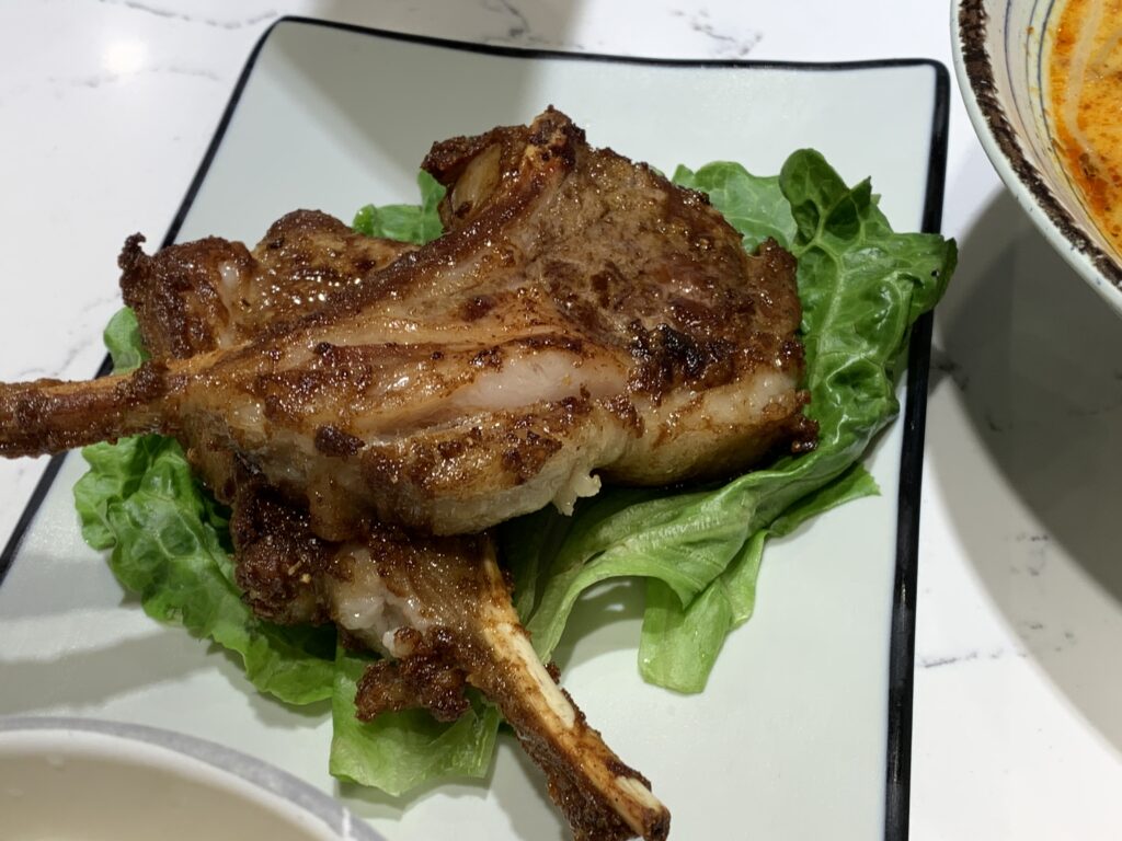 第二樣點了羊小排喇沙摻摻,羊排煎香將油脂迫出來,然後混合一口喇沙摻摻,既香濃又不覺油膩。
